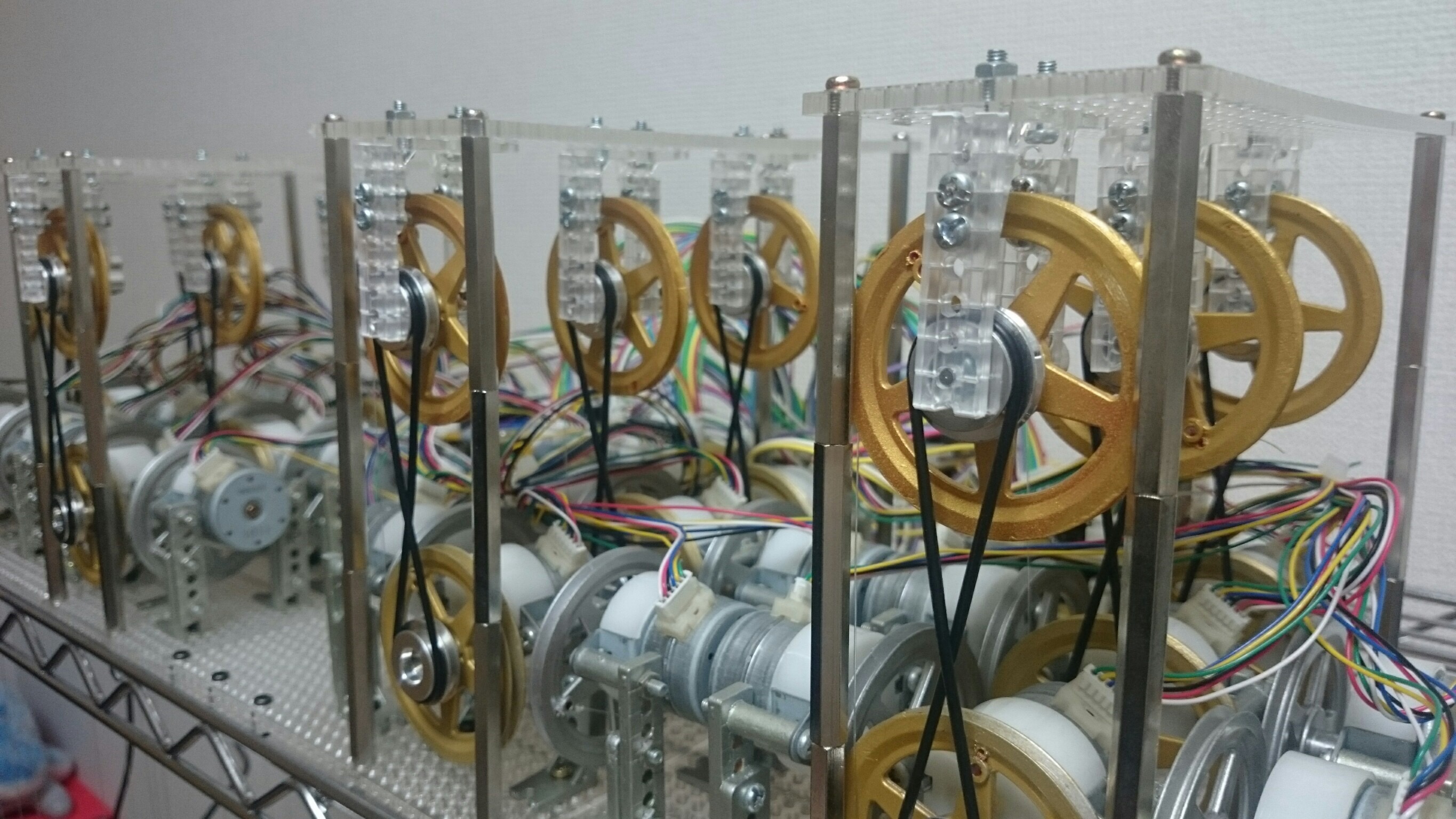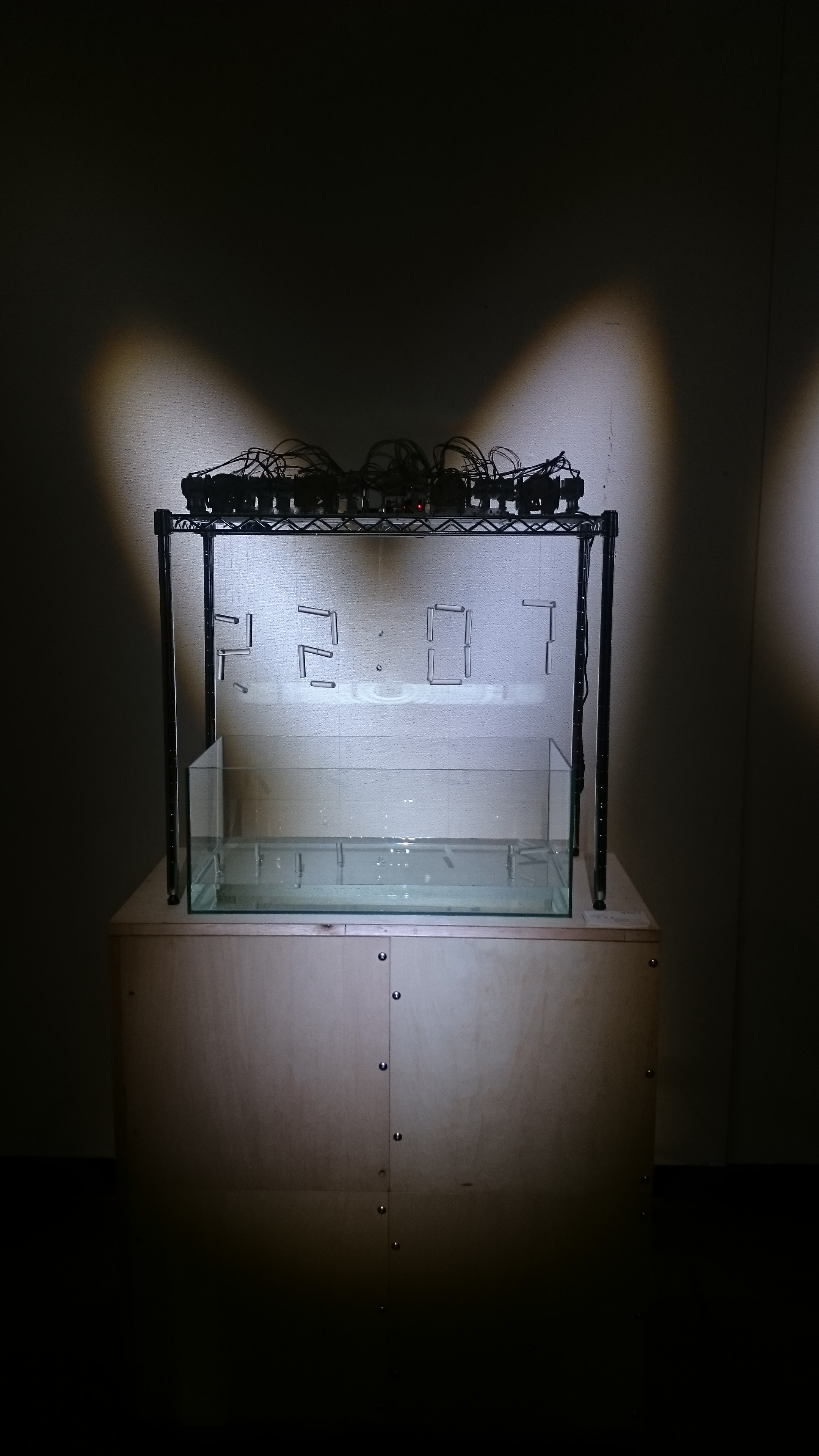Arduino, vibrator motor & 28 stepper motors, aquarium, paraffin oil, acrylic poles, steel rack, fishing line